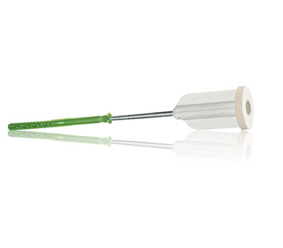 Sistema de fijación para instalación de accesorios a posteriori con cargas ligeras a medias (hasta 15 kg) en fachadas DANOTHERM® SATE que comprende una pieza plástica con junta de estanqueidad para el montaje de accesorios, un adaptador y un taco plástico (Ø 8 mm) con su correspondiente tornillo para el anclado.