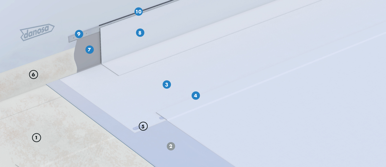Incluye parte proporcional de: encuentros con paramentos elevando la impermeabilización 20 cm en la vertical sobre acabado de cubierta, formados por: capa separadora formada por geotextil no tejido de polipropileno 100% de fibra continua DANOFELT® PP 200 solapado 10 cm; banda perimétrica de conexión a petos formada por lámina térmoplástica de PVC, de 1,5 mm de espesor, DANOPOL® HS COOL ROOFING 1,5 BLANCO; perfil de chapa colaminada DANOSA TIPO B fijada mecánicamente al paramento y cordón de sellado de poliuretano mediante ELASTYDAN® PU 40 GRIS entre el paramento y el perfil de chapa colaminada. Encuentros entre tres planos de impermeabilización formados por: piezas de refuerzo de membrana de PVC DANOPOL® del mismo color en RINCONES y ESQUINAS. Encuentros con sumideros formado por: CAZOLETA DANOSA® prefabricada de PVC del diámetro necesario provista de ala para ser soldada a la membrana impermeabilizante y PARAGRAVILLAS DANOSA®.