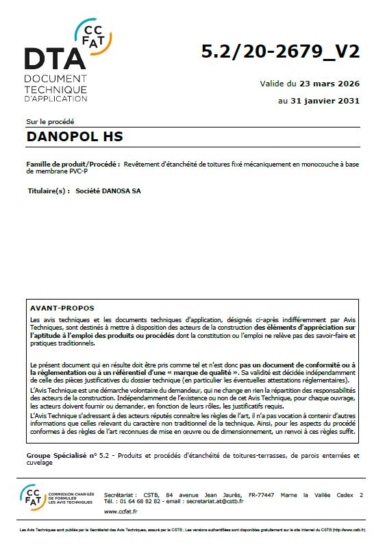 Avis Technique DTA 5.2/17-2589_V4 Polydan Monocouche