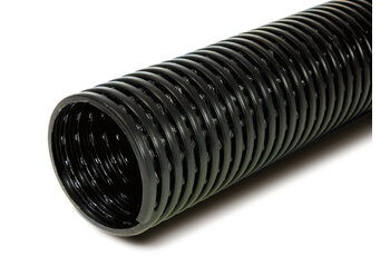 High-density polyethylene (HDPE) corrugated pipe, highly flexible and perforated around its entire perimeter.